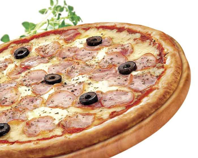 2. Cubra o disco com a muçarela e em seguida espalhe as fatias de lombo canadense uniformemente pela massa.